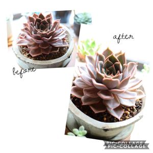 玄関に置いてる寄せ植え💕 ドンドさん 夏に中心を葉やけさせたけど💦 なんとか綺麗になりそうε-(´∀`*) こころさん、リラシナ✖アガボイデスさんいい色になってる(*´ ˘ `*)ウフフ♡
