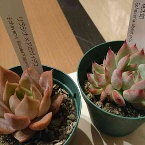 昨日に引き続き出会い❣️ この前シマムラ園芸さんのフェアで悩んだアリエルさん、なんと鶴仙園さんのミニ多肉コーナーで発見‼️お持ち帰りしてきました😆ピンクで可愛い💕 お隣のリラシナ✖︎アガボイデスもお供に‥ 4つでも野口さんだもんと言い訳しつつ😅