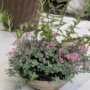茎の先端に 小さな桃紅色の花を 房状に付けます💕 (自宅ほったらかし鉢植え ミセバヤ ベンケイソウ科 多肉植物
