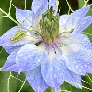 ニゲラ✨ 今日はくもり時々霧雨 バッタの赤ちゃんひと休み🍃