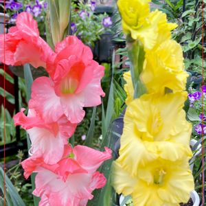おはようございます グラジオラス 黄色も咲き始めました💛 オレンジは2本目です🧡 ぐっと庭が明るくなりました♥️ 今日も良い一日でありますように♥️🍀