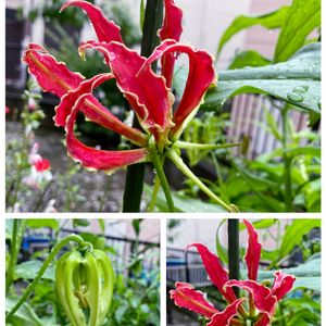昨日雨の中 初開花のグロリオサ♥️ 今朝は花びらがもう少しひらいて 綺麗に咲いています♥️ 4年目のグロリオサです💓 花友さんから球根頂き 毎年球根増えて 北から南まで たくさんの花友さん宅で咲いてくれてます 今年も皆さんのグロリオサも 楽しみです😊 左下のピーマンみたいな蕾 ユニークですよね😊 今日も楽しい一日でありますように♥️