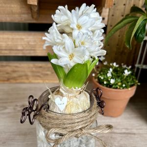 ヒヤシンスの水栽培 少しずつ開いてきました🪻 八重咲きなのでもう少し開くのかな? 明日、ひさしぶりに末の妹が甥っ子と実家に来る予定 すぐ下の妹にも会えるので母も合わせてヒヤシンスの水耕をプレゼントしようと根洗いして仕込みました 甥っ子にはバレンタインも近いしクマとウサギのロリポップチョコを💖 流行りのお菓子ブーケにしてみました🐻🐰