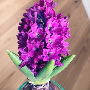 ヒヤシンス🌸 2つ目 やっと咲きました。 でも、成長不足?茎の下で埋まってるところがあります💦