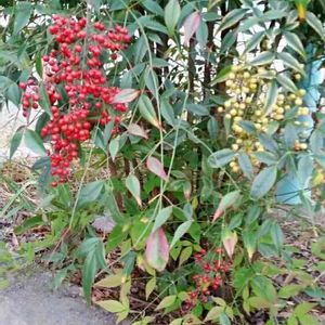 ナンテンの実… 散歩道で見つけました👀 紅白、仲良く並んで実をつけてました😊
