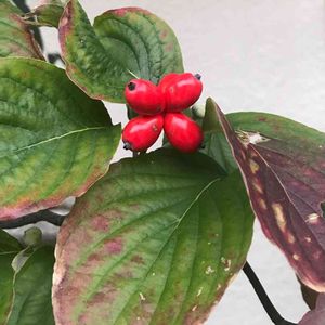 ハナミズキの実 ハナミズキの葉っぱの紅葉に気を取られていましたが近づいて見ると真っ赤、艶やかな実が!🌸🍁