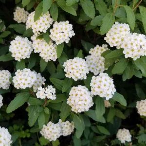 これも散歩道で。 花壇の下にひっそり咲いていました。こでまり?アリッサム?