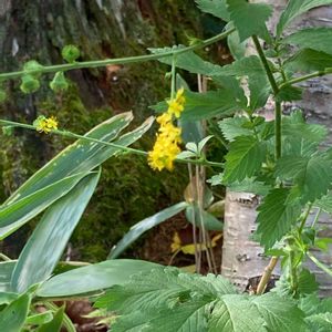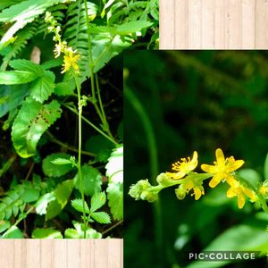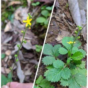 ヒメキンミズヒキ みんな姫さま👸🏻 キンミズヒキが人里の路傍などに多いのに比べ、やや自然性の高い落葉樹林の林床や渓流沿いなどに生育する傾向がある。草丈は低く、花茎を含めても50cm程度のことが多い。葉は羽状複葉で、下部の葉の小葉は5で、稀に7つとなり、上部の葉は3小葉となる。花茎は細く、8月から9月にかけ、黄色い花を咲かせる。花の直径は5~7mmで、キンミズヒキが6~11mmであるのに比べ、小さくて花弁は細い。果実もより小さい。