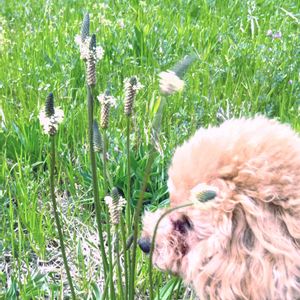 久々に 散歩中の ちーちゃん。 オオバコの前にいる私の 視界に入り込む。 ちーちゃん、 さりげなく オオバコと戯れる。 ∵❀∴❀∵❀∴❀ ♪〜✿❀