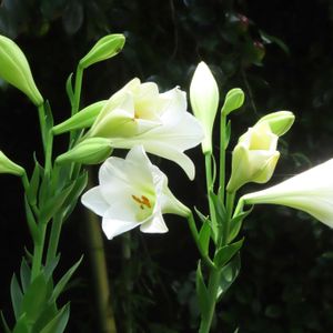 綺麗に咲いた「テッポウユリ」or「タカサゴユリ」に出会えました。どちらだろう パチリ でも「テッポウユリ」は6月のイメージが・・・🤔 「タカサゴユリ」は8月、花弁に茶紫の筋が・・・🤔 Googleレンズで調べたところ「テッポウユリ・ホワイトエレガンス」のようです。😊