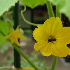 姉の家に遊びに来ています🤗 なんと😲 今日のお花 キュウリ🥒💛 しっかり虫さんがお仕事しています🤗 🏷月曜日は元気色の花 参加します💛 それにしても暑いよう🥵🥵🥵🥵