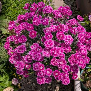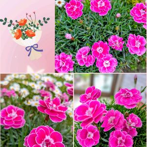 今日のお花『ナデシコ』🩷🤍 ウチ🏠の小さな庭に今咲いている『ナデシコ』達(①②)です。 ①ダイアンサス『あなたにキュン』🩷、今朝ちょうど1輪咲きました👍✨1輪目はやはり小さめで可愛い😊💕 春にはこの2倍くらいの大きさで咲いたのでビックリ‼️ 小花好きなのでこのくらいでいいんだけどなぁ🤔 ②『なないろ小町』も咲いてきた❣️ 白色で咲き始め、白🤍からピンク🩷、赤❤️に花色が変化するので、これからがまだまだ楽しみ😊✨ 1苗🌱で3度美味しい😆💦 でも多分この暑さだから気まぐれに咲いたのかも?💦 どちらもほぼ四季咲き性なので、冬以外は咲くんだろうけど、やはり春が1番花付きはいいかな? この猛暑の中、よく咲きました💮 ③今日はお墓参りに行きました。 実家には亡き父が植えていた『大輪マツバボタン』🩷が鮮やかに咲いていました👍✨ ④『ブラキカム』💜…可愛い小花咲きました💓 ⑤『ゼフィランサス(レインリリー)』…ピンク🩷ばかりが咲いていたけど、今日は白🤍も咲いていました。黄色💛も咲くはずなんだけど、3色🩷🤍💛揃う事はほぼ無いなぁ🤔 今日も暑い1日でした🥵💦 お墓参りは8時には行きましたが既に日差しが強くてキツかった😓⤵️ お盆過ぎたら涼しくなるっていつも言ってたのはもうはるか昔のような…😓💦 皆様ご自愛下さいませ😊✨