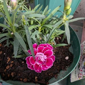 🌸今日は『母の日』🌼 ①母の日という事で、ウチ🏠の庭で今咲いているカーネーション…ではないけれど、ナデシコ🩷です。小花好きなので、手前の『なないろ小町』🩷🤍❤️はコレ1苗🌱ですが、白からピンク、そして赤に花色が変化するので、3色いっぺんに楽しめて、小さいけど華やか〜⤴️💕 ただ、向こうのダイアンサス『あなたにキュン』というナデシコ🩷 お迎えした時はこんな大きな花🌸じゃなかったんだけどな🤔 なかなかド派手に咲いています😅💦 ②夕方、近くに住む次女が母の日のプレゼント🎁を持って来てくれました。長女は必ずくれるのですが、次女はくれたりくれなかったり💦 まぁ期待はしてないのだけど、5歳になったばかりの孫っちと来てくれました。 「あーちゃん、いつもありがとう‼︎」と元気よく渡してくれて私もご満悦。最初の「ば」を省いて「あーちゃん」と呼ばせています。 もう小5になった初孫からなので、娘達もこう呼んでくれてます😊✨ ただ、生花かと思いきや作り物のカーネーション❤️でした💦 そこは次女らしいわ(笑)😆 今朝切った亡き父のバラ🌹を添えてみました😅…色が思いっきり被ってますけど💦 ③GW中にスーパーのお花売り場には紫陽花が沢山売られていました。 その中で私の1番のお気に入りは、この『茜雲』という小さな手毬のような紫陽花🩷 普通の花の3分の1くらいのコンパクトな花で、しかも花付きが良くて色も優しいピンク💕 ただお値段が優しくない😳‼️ ④こんな可愛いネーミングの紫陽花🤍もありました❣️ 『月うさぎ』🐇…ホント白うさぎの長い耳🐇のような形💓…コレも中々のお値段💦 ⑤他にも色とりどり、いろんな種類の紫陽花があり、私にとってはいつまでも見ていられました😊✨ 一生懸命どれにしようか見ている娘、息子さん達。この中のお花もらったお母さん👩はめちゃくちゃ幸せですよ👍💕…と心の中で思いました😌💭