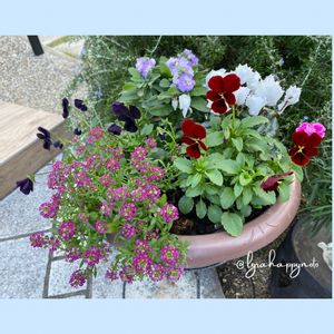 2024/11/23 寄せ植えがもりもりしてきました〜。 玄関前は、ほぼ日陰なんですが💦 時々、日に当てるために庭に動かしたりはしてます〜。 ガーデンシクラメン アリッサム ストック ビオラ ビオラソルベブラックデライト