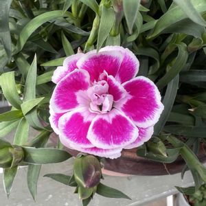 おはようございます😃 ダイアンサス あなたにキュン❗️ 斬新な名前です😅 1月8日に見切り品コーナーから 連れて帰りました。 ダイアンサスは春に咲くイメージだったので こんなに早く咲くとは思いませんでした😳 霜降り肉に見えるのは自分だけでしょうか😂