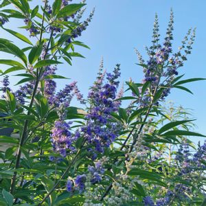 セイヨウニンジンボク 満開に近いようです 🐝⋆︎*゚∗🐝が飛び回っています 鬱陶し今日ですが 爽やかな色と匂い……… 一服の清涼剤になります🤗