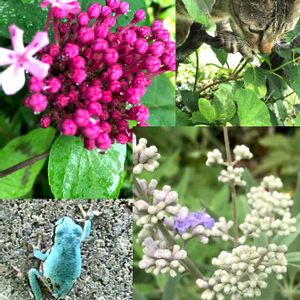 こんにちは 今朝咲き始めたお花です ボタンクサギのピンク色の蕾とお花が可愛いです セイヨウニンジンボクも咲き始めました 水色のカエルは水撒きで逃げ出しました 黒いシマシマさんはリンゴの木に登って私の庭仕事を見ていました 早く終わらせてご飯にしようね 今日も見ていただきまして、ありがとうございました