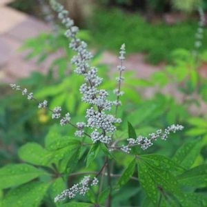 7月に開花したセイヨウニンジンボク🌳 花後、剪定して二度目の開花です✨ 今回は、バスケットの中にオアシスを入れて生けてみました😊