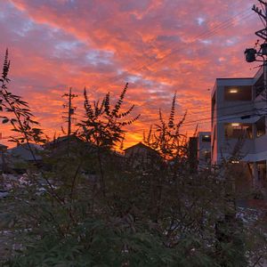 セイヨウニンジンボクと今朝の朝焼け😃 朝焼けがとても綺麗でしたよ😊