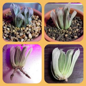 右下は、12月3日。 根も少しは伸びたね。🕷 班入は成長が遅いからね。🧒🏼 葉緑素が少ないからでしょう。🕷 そういう事。🧒🏼 今回の用度は?🕷 黒腐田土。の、粒状用土。 水持がよく、排水性も良くした。 🧒🏼 そうなんだ。🕷 でもさ、教科書には、「水持がよく、水捌けの良い用土」と、書かれているけど、具体的に説明出来る?🧒🏼 んー。難しいよ。🕷