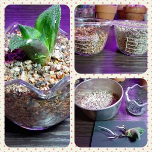 この配合用土も面白いね。🕷 どんな感じになるのかな?🧒🏼 水捌けはいいんでしょう。🕷 確かに、ガラス鉢だから水分の蒸発は、表面からになるね。 底には、くん炭を入れて置いた。 底水が腐敗しないようにね。🧒🏼 経過観察ですね。🕷 そうですね。🧒🏼
