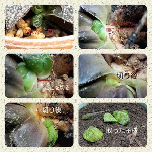 剪定。 葉間の子株を取ります。🧒🏼 根はまあまあやね。🕷 そうでも無いけど。🧒🏼 近くの葉も、取れてる!🕷 メスの入れ方が難しいのよ。 近くの葉は、先に取ってメスの入れる角度を調整するの。🧒🏼 難しい?🕷 難しいよ!真似はしない方がいいね。後悔すると思う。🧒🏼 😱😱😱😱😱