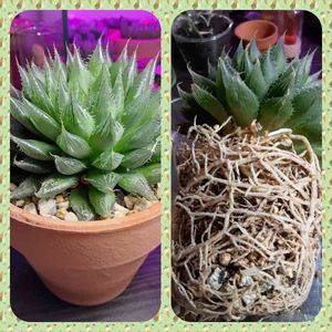 植え替え。 うわぁー! 根がまわってる。 三号鉢に植え替え。 それでも、狭いかな?🧓 用土は?🕷 黒腐土だよ! 植え替えで、切り替えするんだ。🧓