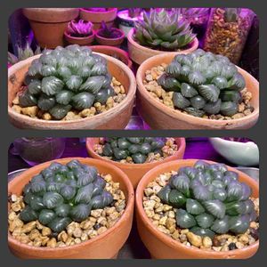 子株の寄せ植え。 知人にあげる予定です。 このままか、成長を見てからか。 上手く成長したら、手放したく無くなったりして? まあ、安定してからかな。 直ぐに枯れたら、悪いしね。🧓 用度は黒腐土使用。🕷 黒腐土使用の鉢は増えたね。🧓 最近のハオは、黒腐土使用でしょう。🕷 そうだよ。実験から実用になったね。🧓 メリットは? んー。根の張り具合がいい様な感じ。🧓 感じ?🕷 ごめん、曖昧で。 小鉢のハオを、三鉢植え替えだんだよ。根の張りが良かってね。🧓 そうなんだ。🕷 それと、徒長が抑えられてるかな。って、前から徒長しないように、心がけてるけど。🧓 問題がないのは、いい事だね。🕷 そうだよね😀