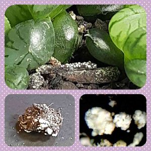 この白いの何?🕷🤔 さあ。🧓 さあ?カビ?🕷 さあ🧓 わかんないの?🕷 菌だろうね。菌の集落をコロニーと呼ぶね。コロニーは肉眼で見れるからね。🧓 菌が確認されてるんだね。🕷 今は、それだけしか言えない。🧓 黒腐土は面白いね。🕷 この菌の分析までは、出来ないからハオの変化を観察するしかないんだ。🤔🧓 そうだね。🕷 葉の光沢は綺麗だろ。 菌根菌が生成されたかな? 菌根菌は、根からの給水とリンの補給をしてくれるから、多肉植物の水ストレスを軽減してくれるんだよ。リンはATPを作るからね。エネルギー量が増えるね。🧓 話が見えない。😒🕷 解説すると長くなるから、みどりのまとめでね。🧓