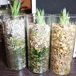 葉民さんこれは?🕷 多肉用の用土だね。 左と真ん中は、市販されている用土。右は自作用土だよ。🧓 苔が見えるね。🕷 湿度が高いから出るんだよ。 ガラス容器は、底穴がないからね。 この、実験から粒状の用土は乾燥しやすいから、多肉用に適切だね。🧓 どうして?🕷 用土に空間があるから、水分が蒸発出来るんだよ。 なるほど! 黒土と腐葉土のブレンド用土は?🕷 これから、実験するんだよ。🧓 結果が怖いな、水分が蒸発出来るのかな?🕷 理論的には、出来ると思ってるんだけどね。🧓