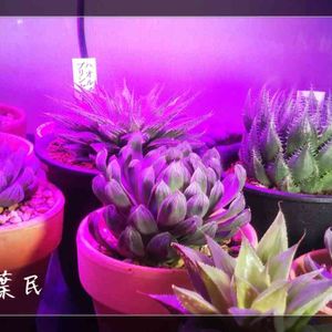 育成用ライト。 魅惑の色? 赤と青で紫。 赤と青の波長が植物に必要だね。 他の波長は、スルー。