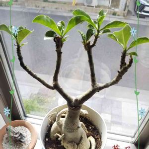 砂漠のバラ? 葉は増えたね。 君は、何種類? C3、C4、CAM? わかんねー! 茎に貯水してるからね。 葉は、普通だからC3だよね。 特殊な植物だね🧓🧝♂️🕷