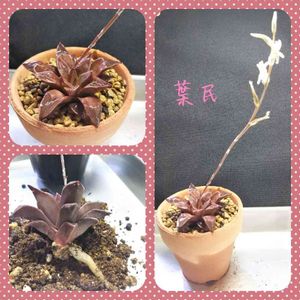 変わった色合いだね。🕷️😃 だろう、園芸店で二週間前から気にしてたんだ。用土から抜けかけてたし、枯れはじめてるのかなと、思ってたんだ。 枯れてるの?🕷️ わかないね。でも、花が咲いてるしね✨元々こんな色かな? 枯れる前に、最後に花を咲かせましょう‼️😃 成る程👀イヤイヤ違う違う。タグには、レッツーサと書いてるけど、少し違う? この、色合いで成長したらいいね🕷️ どうだろうね😒面白いから今日、買っちゃった❗️ 高かったの?🕷️ 280円でした。😃 だろうね‼️葉民さんの甲斐性ならね☺️ うわー!きついなー‼️