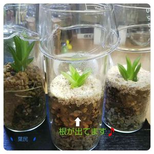 生贄ハオテラだね。🕷️ うっ、うん どうなの? 成長してるように見えるけど。同品対比出来ないから何とも言えないけどね。 何か悩んでるの? 実験装置の湿度は90%なんだ。朝、装置から出してガラスの蓋をするけど、どうかなと思ってね。 なら湿度を⤵️たら 夜の暗さと、温度と湿度で気孔が開くんだよ☺️ ふーん。 根から吸収される水は、水素、酸素、電子に分解され、明反応で暗反応で使われる酵素を作るんだ🎵😃 リンゴ酸を濃縮させたときに、水やりのタイミングは、早くすべきと思うわけ😃 実験ハオの3号に今週は、2日に一度の水やりを、しようと思うんだ。変化を見たいんだ🎵 だから、この鉢なの⁉️ そうだよ😃 面白くなってきたね🕷️ 面白いよ😆😆😆