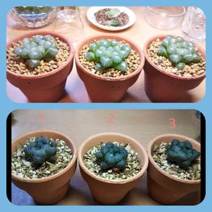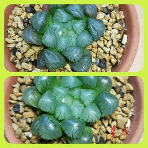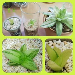 京の華錦の小苗。 右は親株だけどね☺️ 左の子株は、順調だけど。 右の子株が気になる。 クロロプラスト、少なくないか⁉️成長するかな?😃