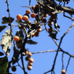 リュウキュウマメガキ 琉球豆柿 シナノガキ 信濃柿 カキノキ科カキノキ属の落葉広葉樹 雌雄異株 関東以西の本州、四国、九州、沖縄に 分布する 在来種 よく似た ちっちゃな柿、豆柿を 投稿した事があります。 豆柿は 中国原産で、こちらは 在来種です。 2cm 程の 実は、 完熟しても甘味があまりなくて 美味しくないらしいです。 豆柿 同様 柿渋を利用します。 撮影 2020 11/14 ★ 食べて遠くへ運んでシリーズ