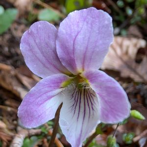 昨年教えていただいたアオイスミレ。 今年も早めに咲きました♪ アオイスミレ(葵菫) スミレ科 スミレ属 多年草 本州〜九州に分布。 道端や丘陵、低山に生える。 全体に毛が多い。 葉は心形、ふかふかの毛が生える。 花は白に近い淡紫色。側弁は無毛、まれに毛がある。 距はでこぼこして太い。 花柱の先はカギ形に曲がる。 蒴果は直径6㎜で丸い。 花期3〜4月 スミレの咲くこの場所は、川が流れていて小さな滝があり、たまに虹が見れます。 地名に沢がつくので、虹の沢と名付けました。 たくさんの山野草が咲く素敵な所です。 3月13日撮影 福島県南部