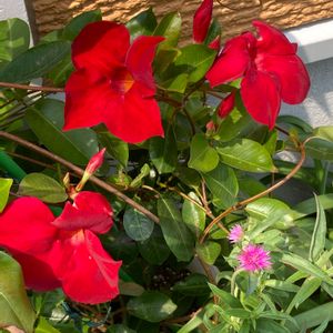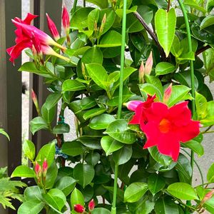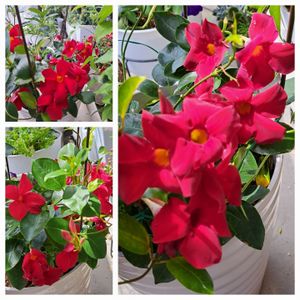 🌺クライミングサンパラソル🌺 5月1日にお迎えして2ヶ月でようやく開花しました😍 右下は5月1日 右上は6月8日 左は今朝撮影のpicです🪴 のんびりさんですが順調に成長しています✧◝(⁰▿⁰)◜✧ [大輪レッド]というお名前の通り大きな赤いお花が咲きました(ʘᴗʘ✿)