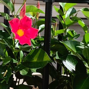 2年目のサンパラソル⛱ 室内で 冬越しした花だよ。 植え替えの時に 去年の支柱より ワンサイズ大きいのに変えたのに もう すでにグルグル🌀巻き!😅 塀に 沿わせたい気もするから… とりあえず つるも 自由奔放に なるがまま💦 つるものって、 どれくらい伸びるか 怪しいから 朝顔も クレマチスも どれくらい大きい支柱にするのか 全然 わかりましぇ〜ん😓