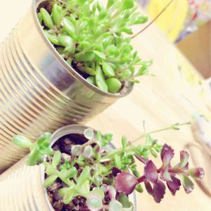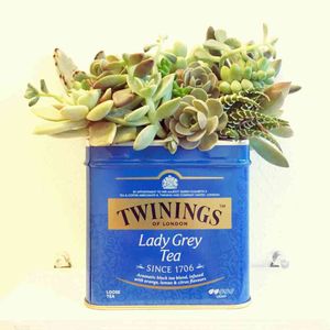 紅茶の空き缶に多肉ちゃん寄せ植えしてみたよ。