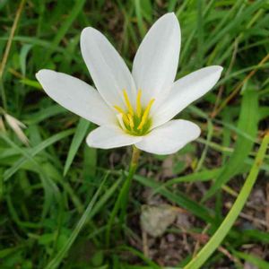 【タマスダレ】 公園で一輪だけ咲いてました😊 ピンクのサフランモドキとはまた違った雰囲気ですね😊 別名: ゼフィランサス カンジダ