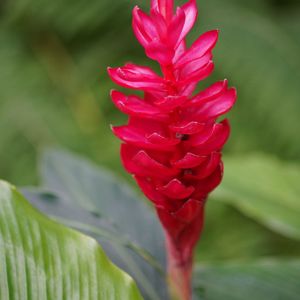 「アルピニア・プルプラタ」 別名→レッド・ジンジャー 穂状花序 苞の間に白い小さな花が咲き始めかなぁ?小さくてすぐ落下するそうだ 京都府立植物園温室1/22