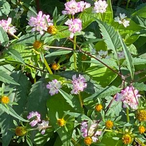 保育園のフェンスから飛び出して咲いている元気な子💛 キクイモの花に似ている気がしますが 本当の名前、教えて下さいm(__)m