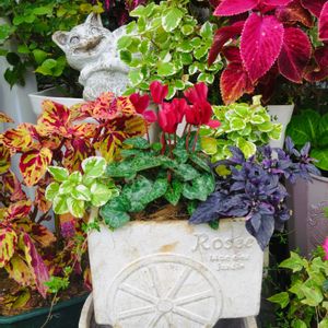 ガーデンシクラメンの寄植え🌿 斑入りアロマティカスと観賞用トウガラシブラックパールとガーデンシクラメンで制作しました🥰