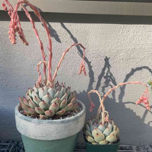 デコボコ桃ちゃん🍑 右はダイソー、左は錦玉園からお迎えしました 好きすぎてよく出てくるふたりです🥰 忙しくしている間にめっちゃ花芽が伸びていました❣ 記念写真を撮ったので、もったいないけどカットします✂