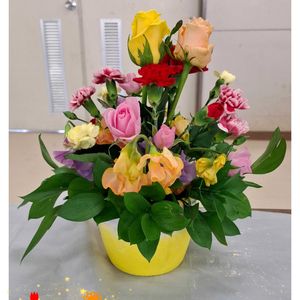とちぎ花センター フラワーアレンジメント体験 2回アンケートで無料 教室だったら3000円くらいだとか👂️ とっても楽しい時間をありがとうございました😆 ④娘作品と並べて飾りました! 🌟今日から2月 宜しくお願いします(o^・^o)