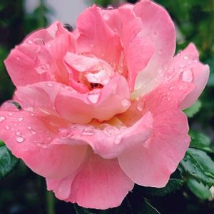 玄関前の鉢植えのバラ❗ やっと咲いた鉢植えのバラ、 雨でお化粧🩷🩷🩷