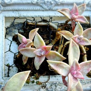 こんにちわぁ🐣☀️𓂃 𓈒𓏸 🍀* 朧月🍀*゜ 寒さの中ジュレること無く頑張ってます。 ピンク色が可愛くなってます。😍💕 ベンケイソウ科グラプトペタルム属の多肉植物の一種 午後からも暖かくしてお過ごしくださいねぇ。💕︎😆 ℭ.⸜(⠀ ᐢ ᵕ ᐢ )⸝⸜( ᐢ ᵕ ᐢ )⸝𝒰ᵗ♛︎⡱