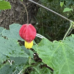 【アブチロン・チロリアンランプ(ウキツリボク)】 ブラジル原産、アオイ科半つる性常緑低木 提灯のように下向きに垂れ下がるユニークな形の花を咲かせる。 成長が早く、花期が長い。ひとつひとつの花はすぐ終わるが、初夏や秋は花つきがよく次々と咲かせる。 つるを伸ばして成長するため、フェンスや壁沿いに這わせたり、支柱を利用して誘引したりして育てることができる。 樹高:0.3〜3.0m 開花期:4月~11月 花色 :赤・オレンジ・黄色 近所の空き地にて