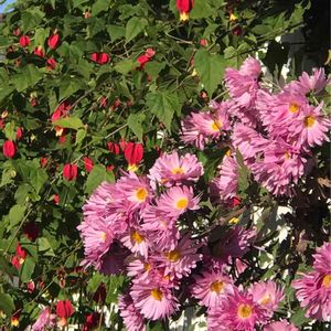 アブチロン かなり、茎が暴れていて、冬にバッサリ切ったので、どうなるか心配でしたが、赤いランプがたくさん😆 この時期は、アブラムシがつくので困ります😰